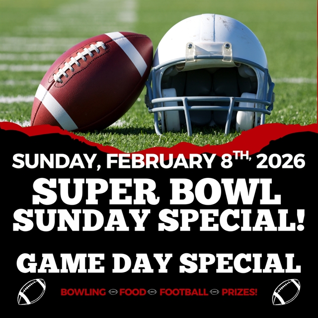 Join us on Super Bowl Sunday for 1 hour of bowling, 1 pizza, and a pitcher of soda! All for just $60!